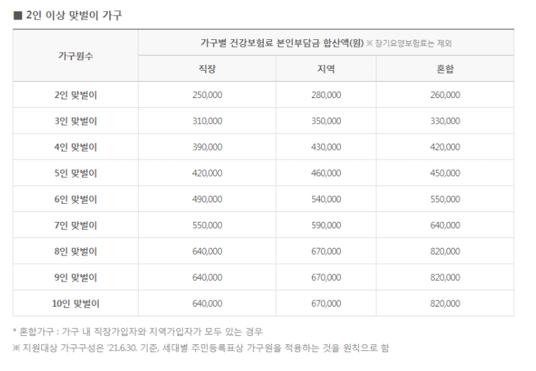 2인 이상 가구 외벌이, 홑벌이 건강보험료 부담 기준